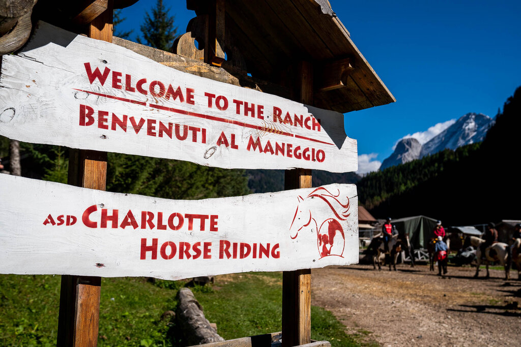 Carlotta und ihre Mitarbeiter organisieren Spaziergänge und Lektionen, im Grünen der Natur oder im Schnee, von 30 Minuten bis zu Trekking, die einen ganzen Tag dauern, geeignet für alle. Sie überqueren die Wiesen, die den Bach "Avisio" säumen, und steigen im Wald zu Aussichtspunkten auf, um die Dörfer von oben mit den Gipfeln des Pordoi und des Gran Vernel in Sichtweite zu bewundern. Möglichkeit, Ausflüge mit Pony für Kinder und romantische Reiten zu zweit in der Umgebung der Dolomiten zu buchen. Im Winter wird auch Equestrian Ski Dragging praktiziert.