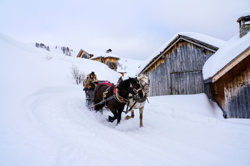 Wenn Sie die aufregende Erfahrung machen möchten, in einen Schlitten zu steigen, der von zwei mächtigen Pferden gezogen wird und eine Postkartenlandschaft bewundert, verpassen Sie nicht die Ausgänge von Michele Defrancesco.