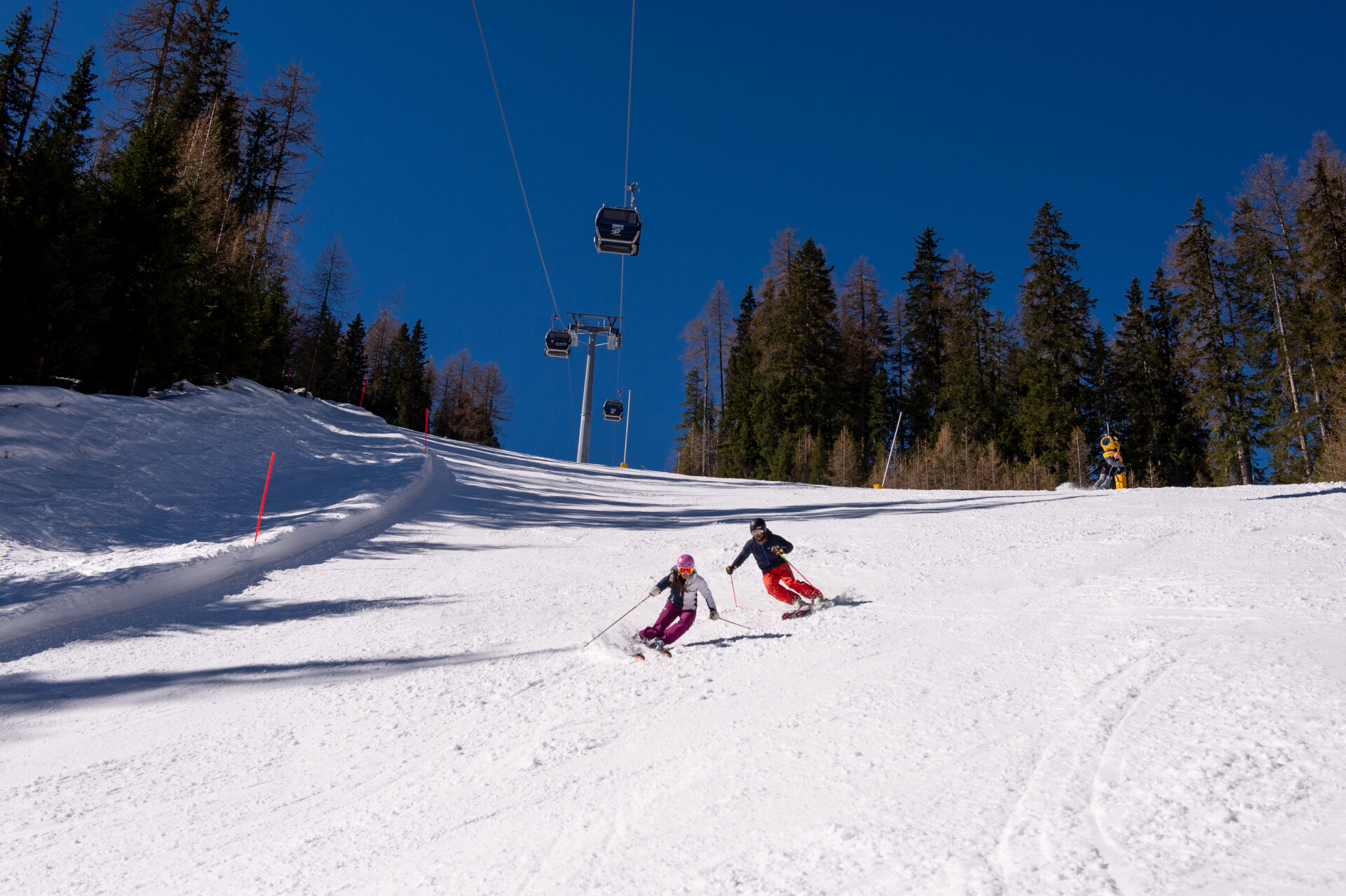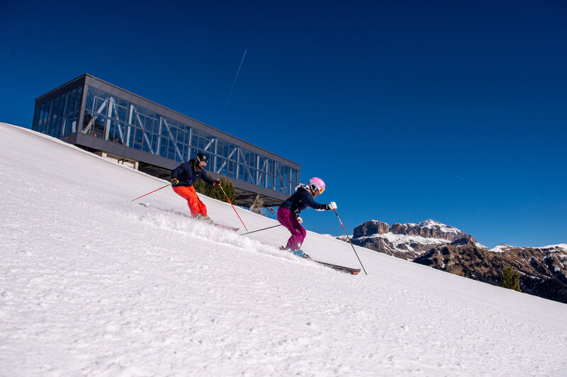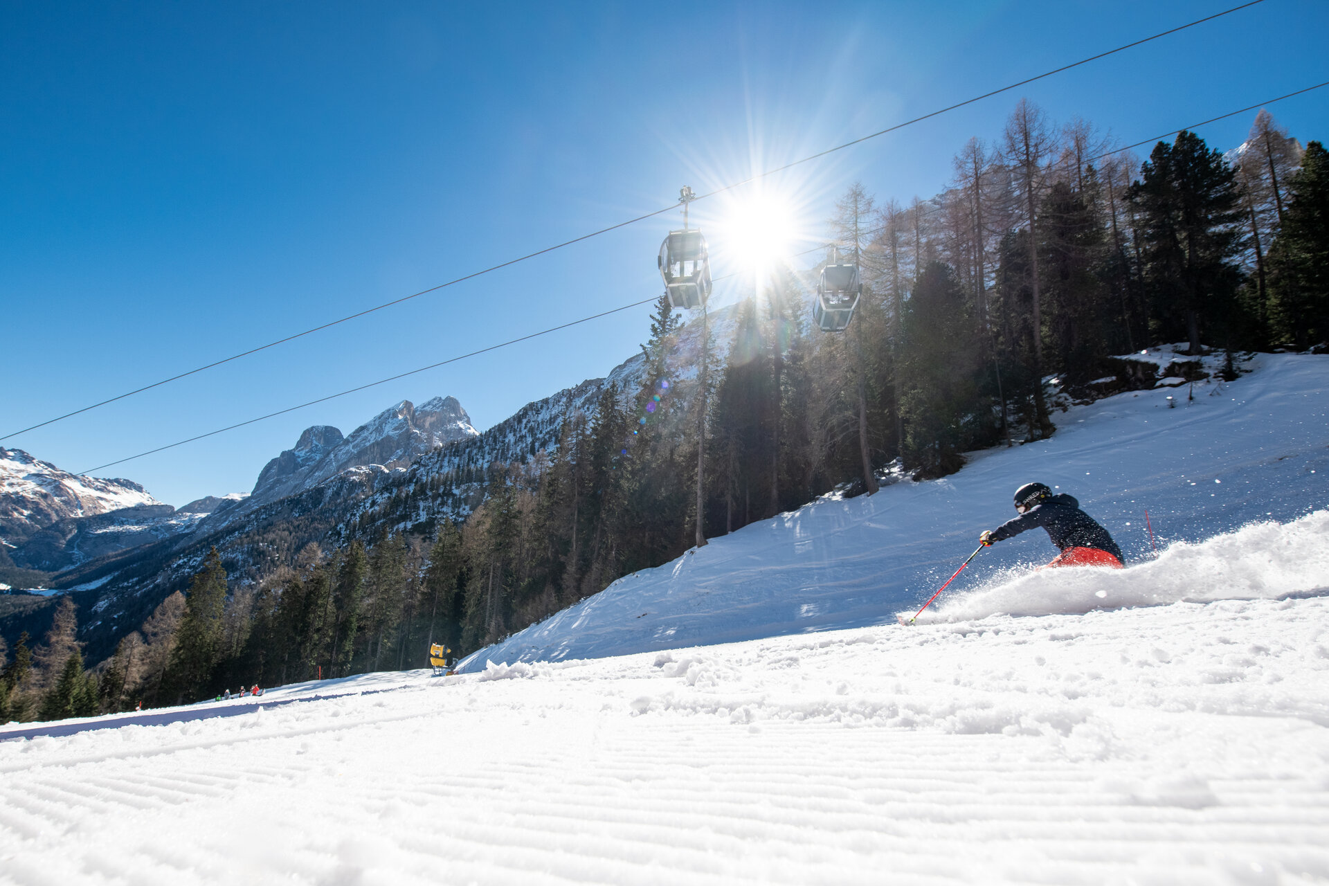 Die Verlockung dieser Strecke ist groß: Nach der anfänglichen Umarmung der Gipfel, vom Piz Boè bis zur Crepa Neigra, tauchen Sie in einen Serpentinenwald ein, der fast steil nach Alba di Canazei abfällt. Bereits an der ersten Wand spüren Sie, was der Schnee zu bieten hat: Sie finden Ihren Rhythmus, spüren, wie der Körper gleitet und den richtigen Druck auf den Schnee ausübt, um Steigungen von bis zu 56 % zu überwinden. Schließlich gleiten Sie in einer weiten Kurve aus dem Wald heraus und direkt zu den Liften ins Ziel.
