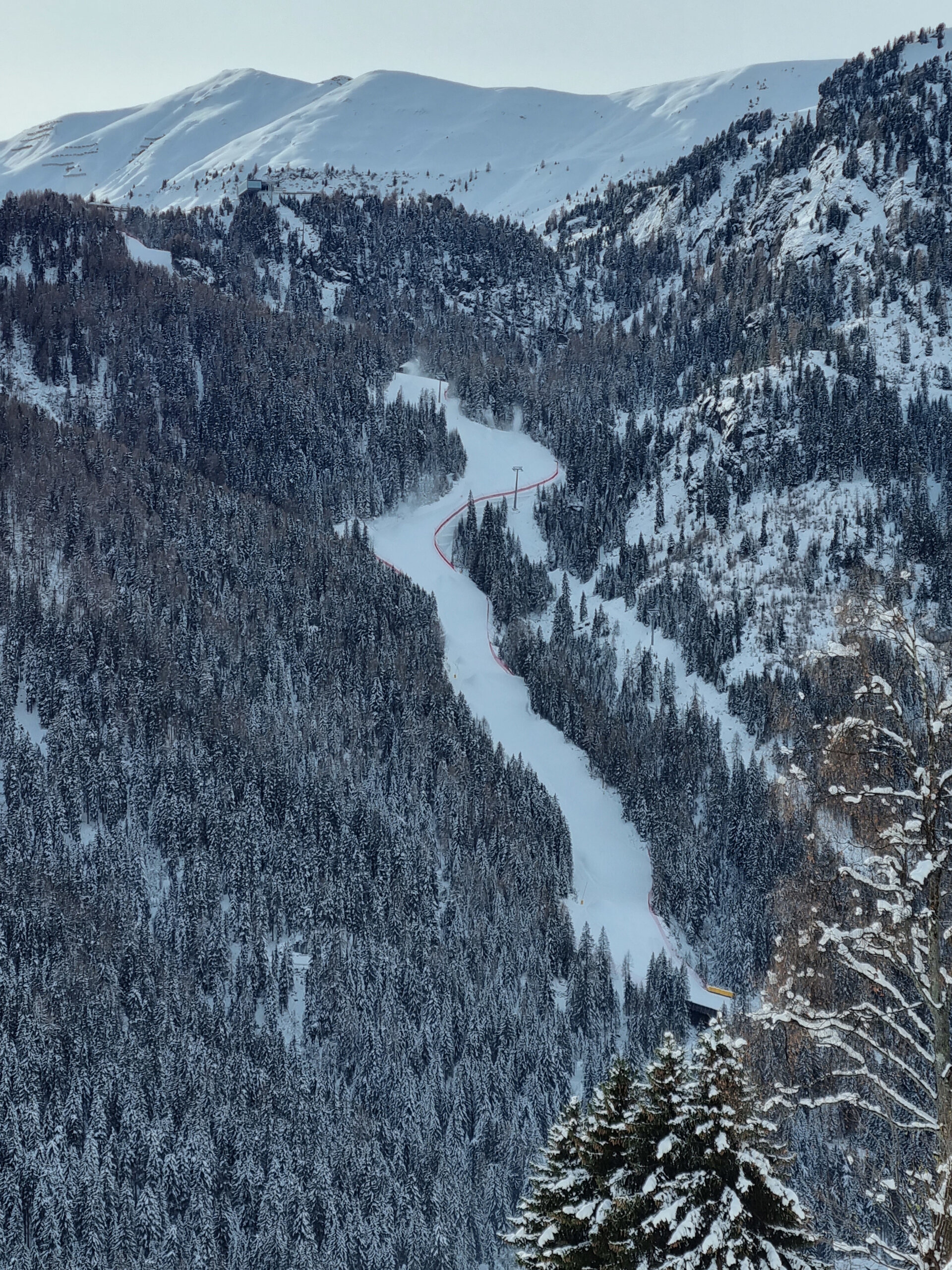 Eine anspruchsvolle schwarze Piste mit 40 m Breite und einer Exposition, die den ganzen Winter über hervorragende, kompakte Schneeverhältnisse garantiert. Eine Panorama-Gondelbahn bringt Sie in wenigen Minuten vom Zentrum von Alba zur Bergstation am Ciampac. Dort angekommen, werden Sie sofort von der spektakulären Aussicht auf die Sellagruppe, den Langkofel und die Marmolada überwältigt, bevor Sie die anspruchsvolle Abfahrt in Angriff nehmen: Über 2 km Länge mit einem Höhenunterschied von 643 m, gespickt mit aufregenden Steilhängen, die selbst die Beine erfahrener Skifahrer fordern. Der letzte Abschnitt wird mit einer weiten Kurve, die immer noch durch den Wald führt, vor dem finalen Schuss etwas sanfter.