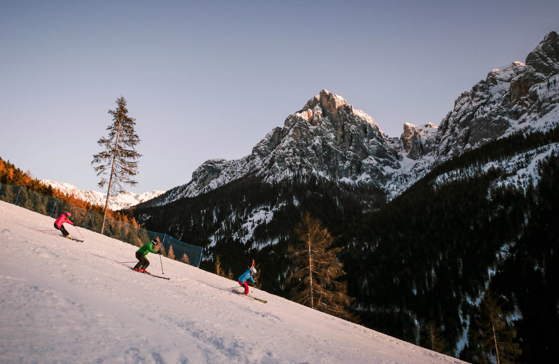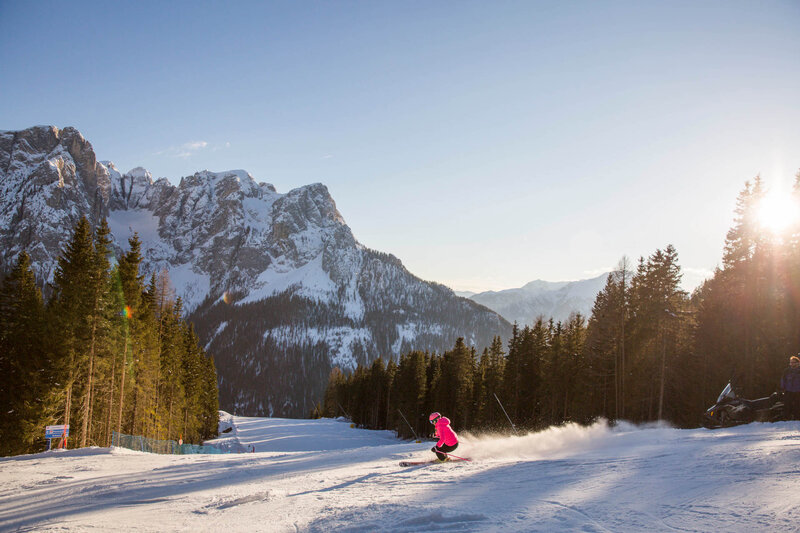 Hier spüren Sie sofort die Energie, die in der Luft liegt. Sie nehmen diese explosive Atmosphäre wahr - eine Stimmung, die nur ein ehemaliger Vulkan, nach dem die Piste benannt ist, vermitteln kann. Ab einer Höhe von 1.922 m wird die Strecke technisch anspruchsvoll. Achten Sie auf die Abfolge steiler Wände mit Steigungen von bis zu 58 % und genießen Sie das wilde Panorama der Cima Undici und Cima Dodici. Diese markanten Gipfel begleiten Sie entlang der gesamten Strecke und führen Sie schließlich mühelos zurück ins Dorf Pozza.