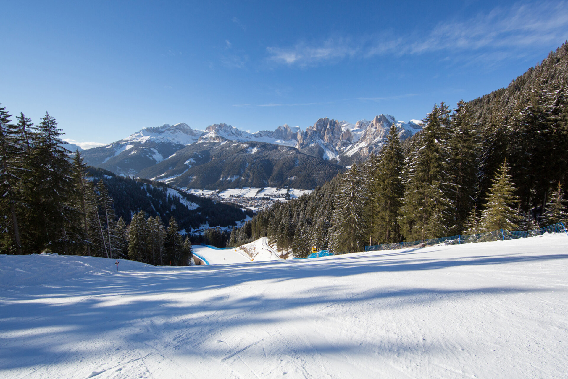 Die 2014 eingeweihte Piste Vulcano am Buffaure ist wirklich "explosiv". Nach einem ersten Abschnitt, der parallel zur roten Piste Panorama verläuft, biegen Sie scharf nach rechts ab und folgen diesem 2 km langen direkten Weg, der mit beeindruckenden 566 m Höhenunterschied steil bergab führt und schnell zur Talstation der Gondelbahn in "Meida" zurückkehrt. Die Strecke, die auf 1.922 m Höhe am Buffaure beginnt, ist technisch sehr anspruchsvoll und ausschließlich für erfahrene Skifahrer geeignet. Hier erwarten Sie eine spannende Abfahrt und sehr anspruchsvolle Wände, mit einem durchschnittlichen Gefälle von 30 % und Spitzenwerten von 58 %.
