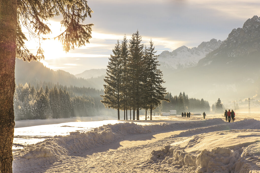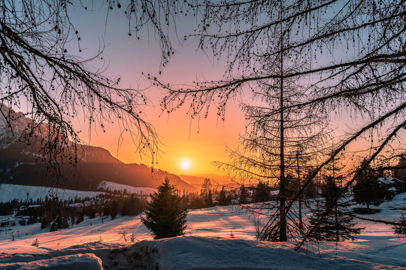 L'Enrosadira è molto di più di un semplice tramonto. È un'esplosione di sfumature che fa brillare il cielo e si riflette sulle Dolomiti imbiancate. È la magia del condividere un'esperienza indimenticabile nella natura, magari con una passeggiata guidata nei boschi ammantati di neve.