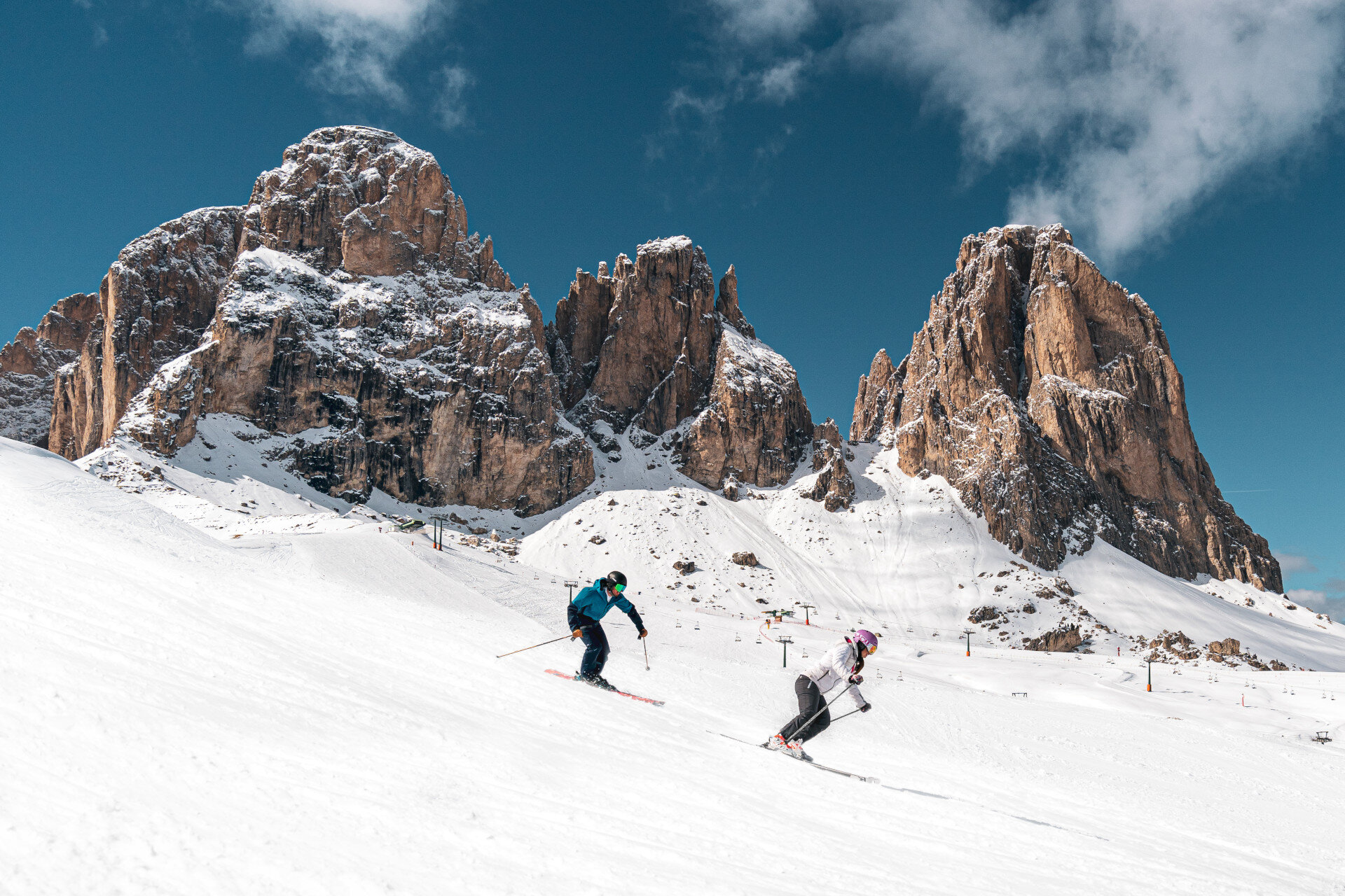 Avvolta dalle cime leggendarie che hanno scritto la storia dell’alpinismo internazionale, la skiarea Canazei-Campitello è tra le mete più iconiche delle Dolomiti. Un unico grande comprensorio che unisce sci ai piedi i versanti opposti del Belvedere e del Col Rodella, i passi Sella e Pordoi, con accesso diretto alla Sellaronda e all’immenso circuito Dolomiti Superski.