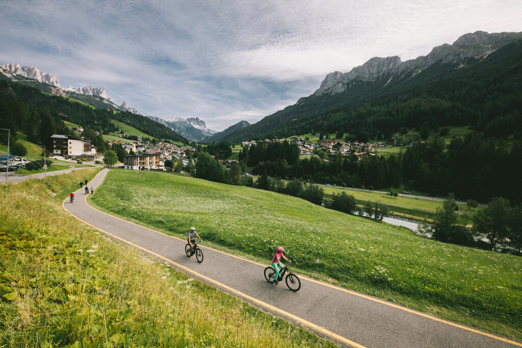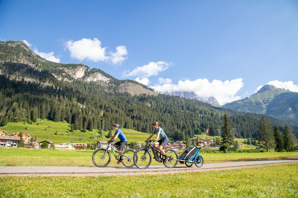 Pedalare tra le Dolomiti piace sempre di più anche ai meno allenati che, da queste parti, possono contare sulla Pista ciclabile delle Dolomiti, un piacevole percorso di 47.5 km (3 ore il tempo medio di percorrenza), perlopiù in falsopiano. Da maggio ad ottobre si monta in sella da Alba di Canazei (1517 m) a Molina Fiemme (965 m), i capolinea delle valli e, al ritorno, si prende il Fassa & Fiemme Bike Express. Lo speciale bus da 30-50 posti, con rimorchio per l’attrezzatura, aiuta i ciclisti a rientrare a casa seduti comodamente a bordo. Tre corse giornaliere e sedici fermate permettono di salire o scendere in ogni paese, a seconda del punto di partenza e della meta d’arrivo.