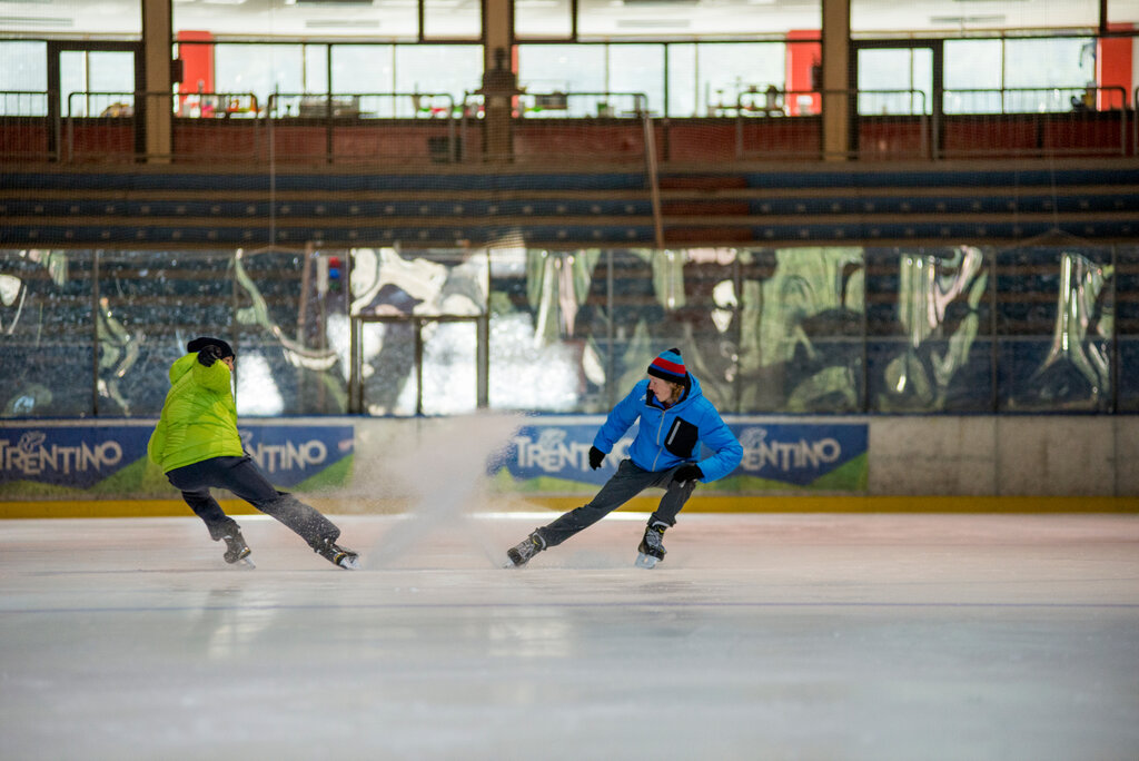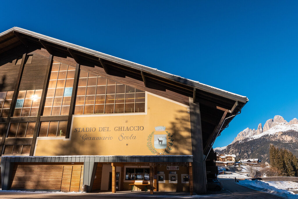La piastra, candida, liscia e lucida, invita a essere solcata con slancio e leggerezza. Allo stadio del ghiaccio coperto "Gianmario Scola" di Alba di Canazei, una favolosa pista olimpionica (30 x 60 m a refrigerazione artificiale) è a disposizione dei principianti e di quanti, invece, sono padroni di piroette e arabesque, da eseguire sul filo di lama a ritmo di musica. La struttura di 12.000 mq, che può ospitare fino a 3.500 persone, permette di affittare i pattini e di prendere anche qualche lezione per apprendere la tecnica di base o migliorare lo stile. Gli accompagnatori possono assistere al di là delle balaustre, sugli spalti, oppure riscaldarsi al bar del palaghiaccio.