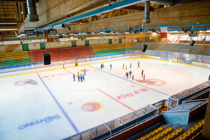 L’arena è la casa dei Fassa Falcons, la squadra locale che da anni milita nel campionato europeo Alps Hockey League. Nel 1987 e 1994, il palazzetto ospitò i Campionati Mondiali di Hockey del gruppo B, mentre nel 2013 fu la sede degli incontri e della cerimonia di chiusura della XXVI Universiade Invernale. Indimenticabili poi le notti del pattinaggio artistico, i Fassa Ice Gala, con ospiti di fama internazionale, tra cui Carolina Kostner, Samuel Contesti, la coppia Barbara Fusar Poli e Maurizio Margaglio.